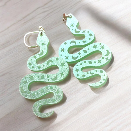 Mystical Pink Snake Earrings – Hand-Painted Laser-Cut Acrylic