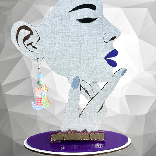 Patchwork Calico Cat Earrings – Whimsical Cottagecore Dangle