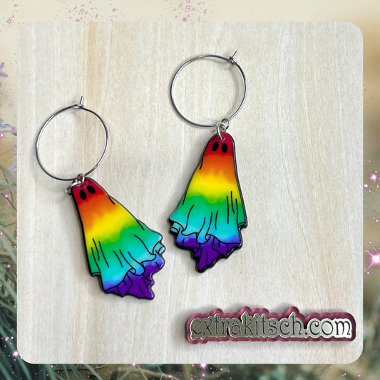 Rainbow Ghost Earrings – Pride Spooky Cute Acrylic Hoops