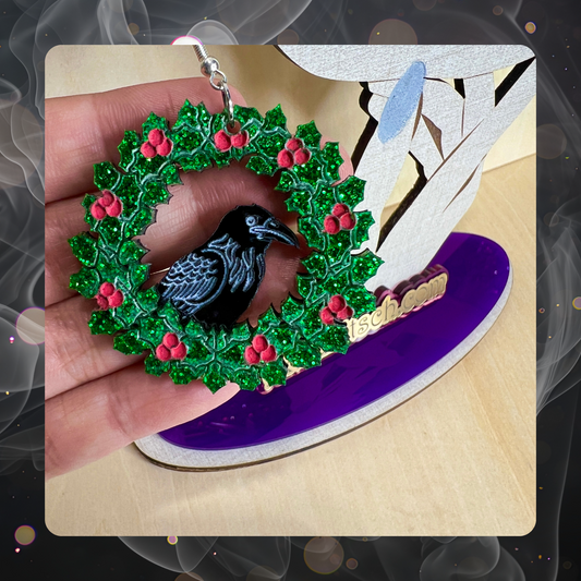 Raven Wreath Earrings – Gothic Holiday Statement Jewelry