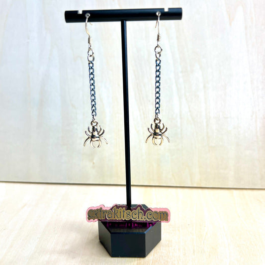 Spider & Web Earrings – Spooky Drop Dangle Pair