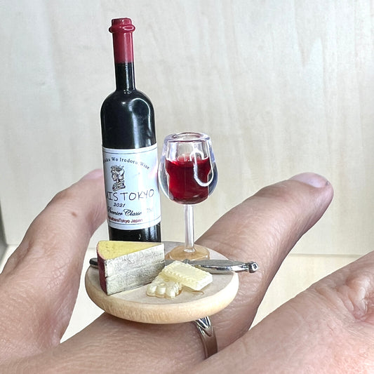 Wine & Cheese Ring – Handmade Adjustable Statement Food Jewelry