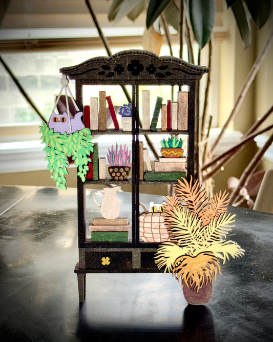 Whimsical Mini Shelf – Books, Plants & Handmade Sparkle Art