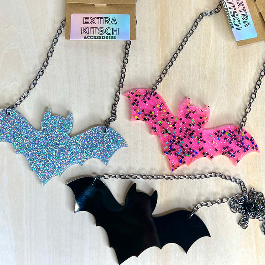 Bold Bat Necklace – Glitter, Black, or UV Pink