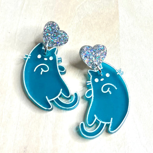 Chonky Pink Cat Earrings – Hand Painted Acrylic Kitty Dangles