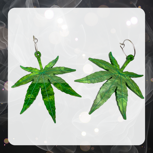Green Glitter Weed Leaf Earrings – 420 Statement Jewelry