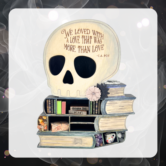 DIY Skull & Book Mini Shelf Kit – Poe Quote Craft Shelf for Gothic Decor