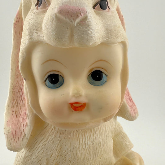 Vintage Bunny Baby Figurine with Book – Whimsical Kitsch Decor