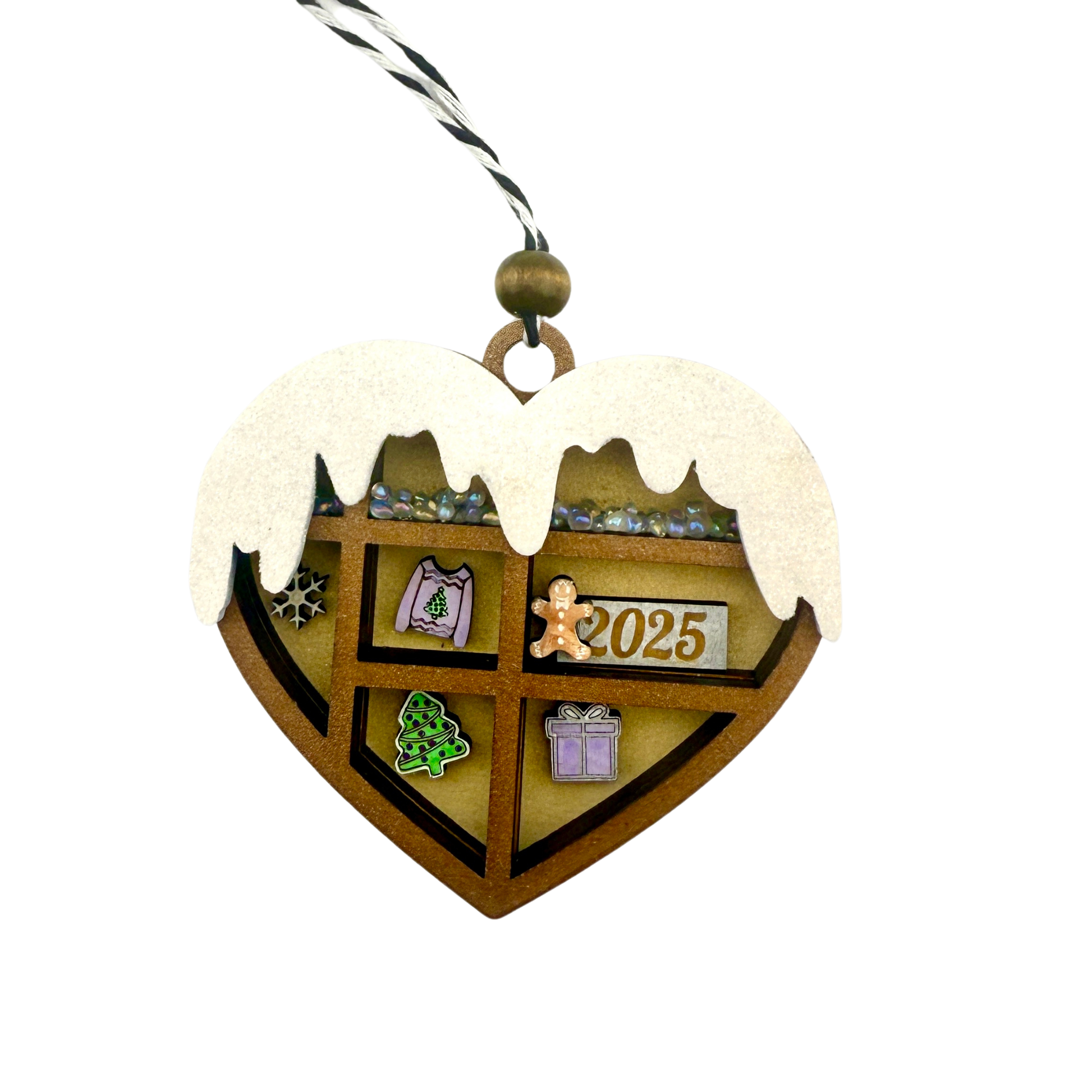 This tiny 2025 holiday curio heart is peak kitsch in the best way. Laser-cut, hand-painted, and filled with miniature gingerbread-cute details, each shadowbox ornament is a little Christmas scene you can hang. The tiny icons inside (gingerbread, tree, sweater, gifts) come in pink, blue, red, or purple, giving every piece a unique pop of color while the ornament itself stays classic and cozy.