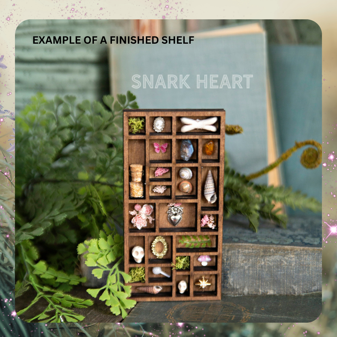 Create your own tiny treasure display with this DIY Mini Curio Shelf Kit! Inspired by vintage printer trays, this laser-cut kit is ready for your creative magic. Paint it, assemble it, and fill it with your favorite miniature finds.