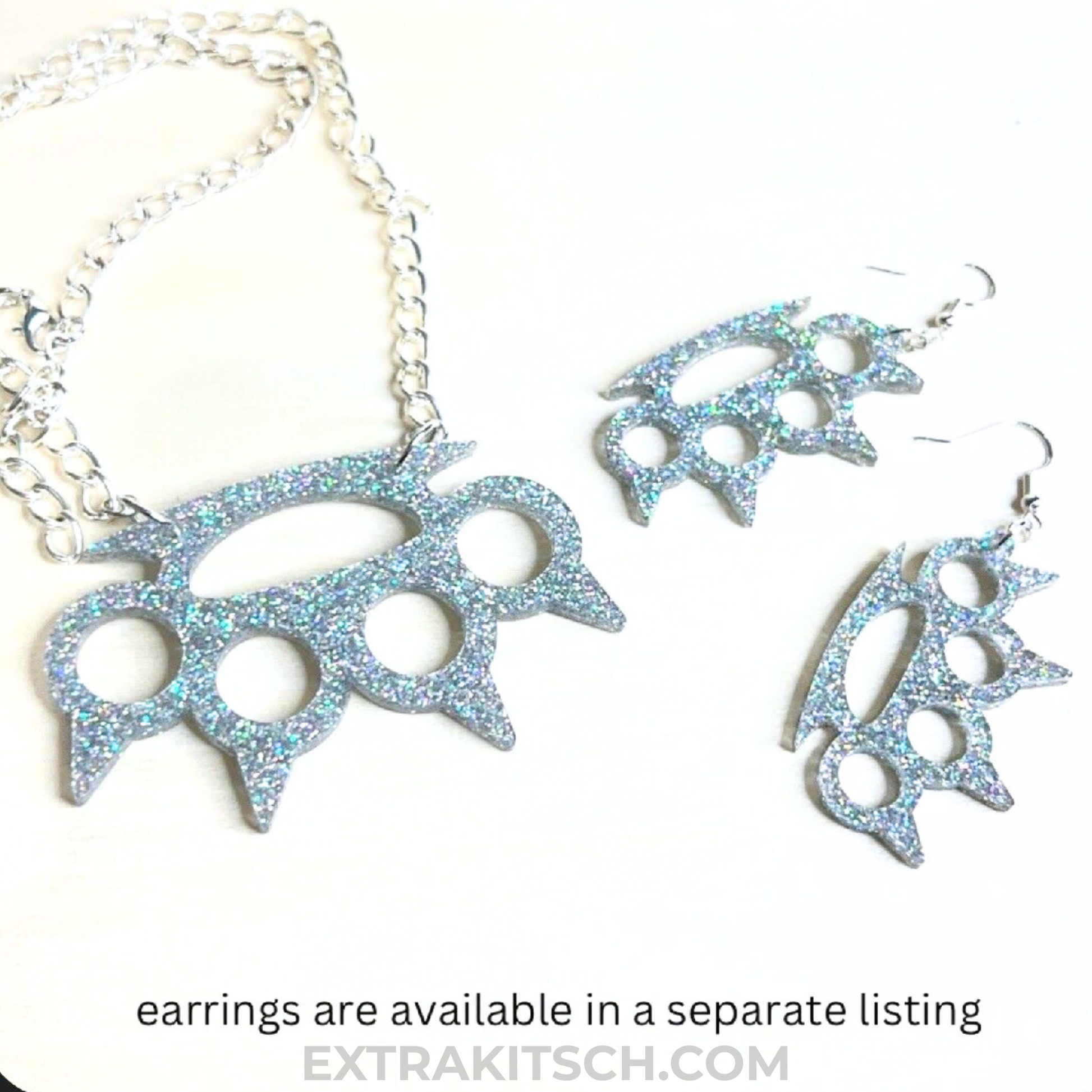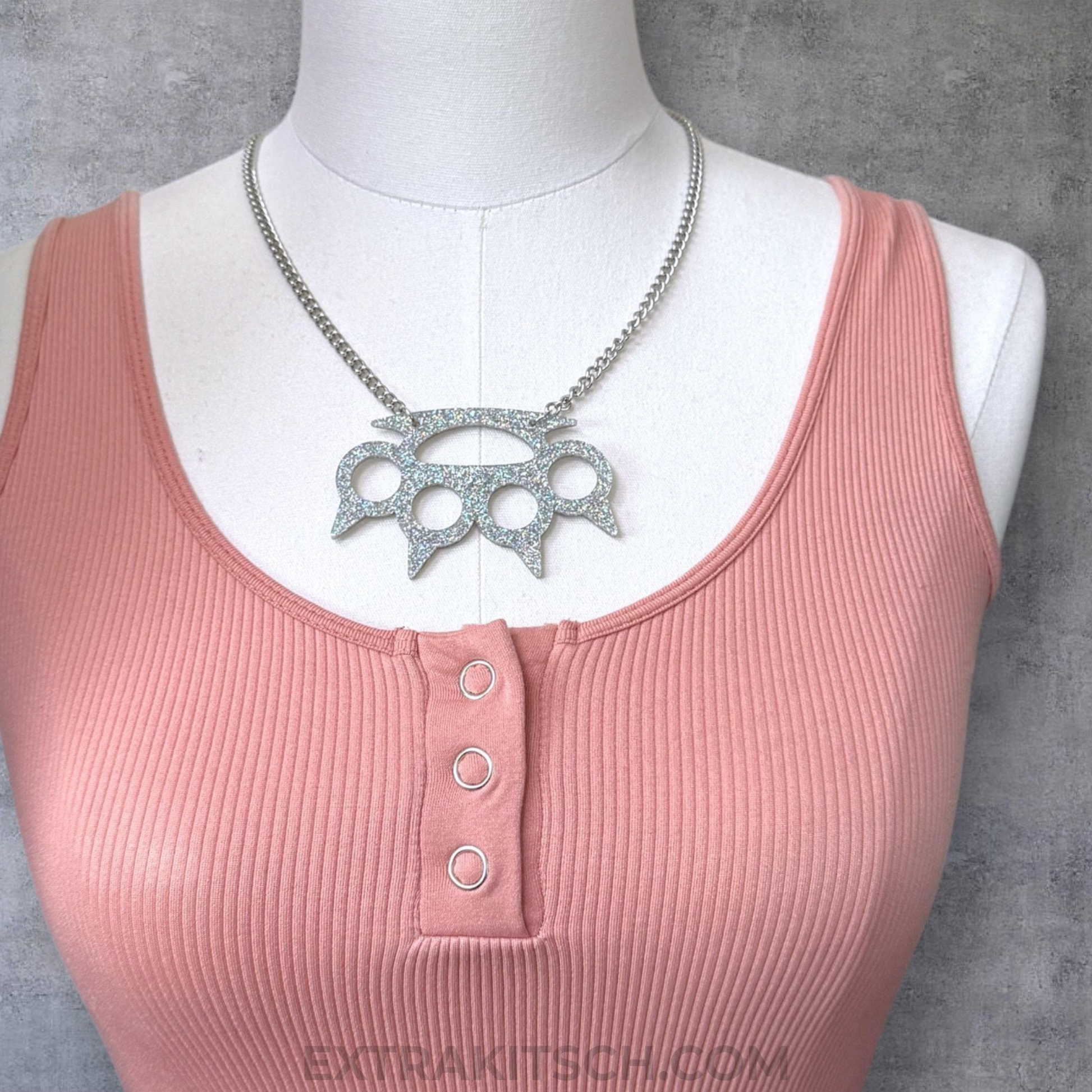 Emo Y2K Glitter Knuckles Necklace – Large Statement Charm